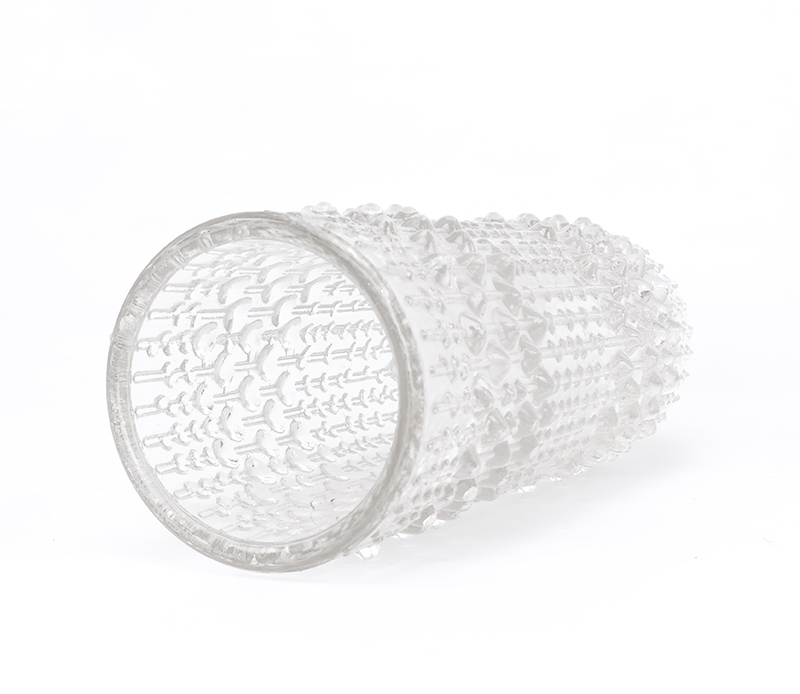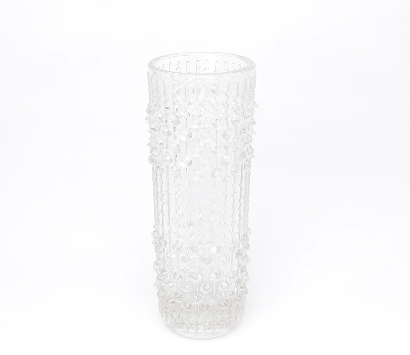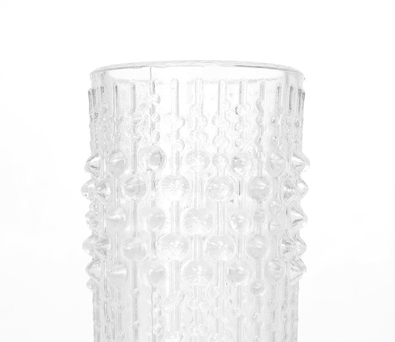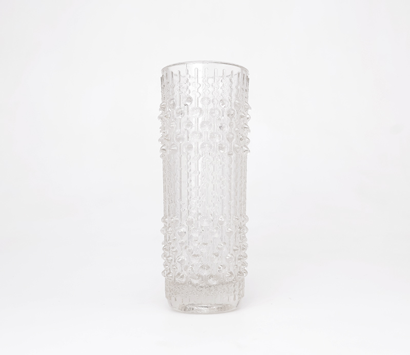 De vaas is gemaakt van dik geperst glas met een structuur decor 20245