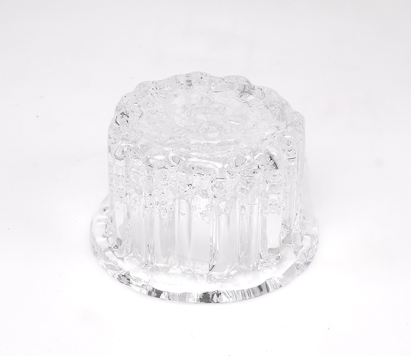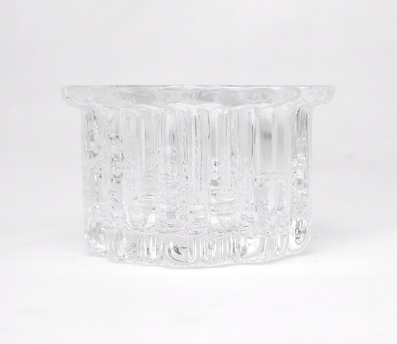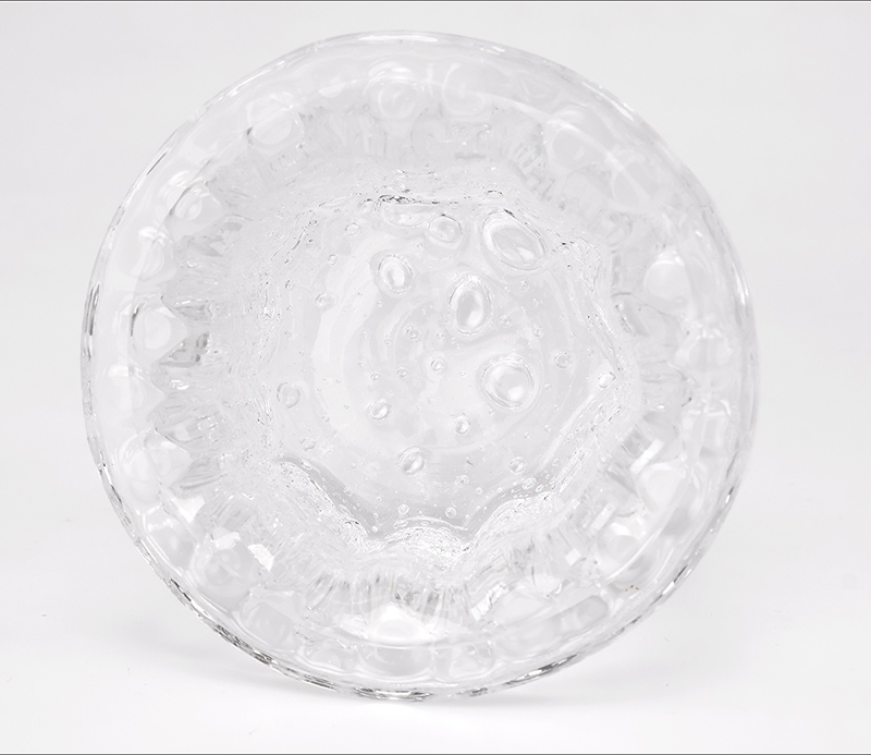 Het glas heeft een geribbelde vorm als een boom met ingesloten luchtbellen en een naar buiten gevouwen rand.