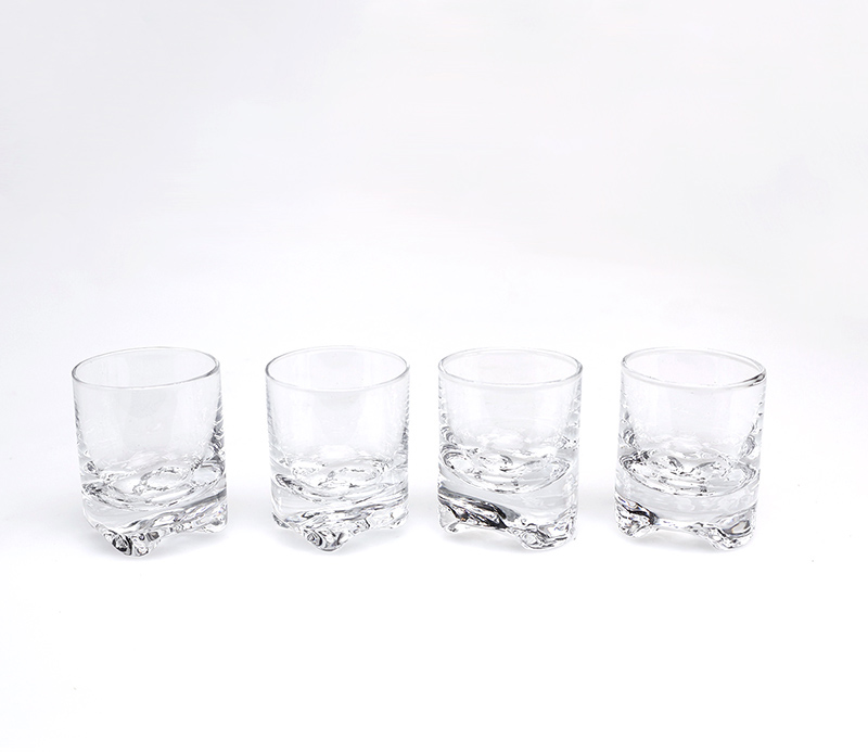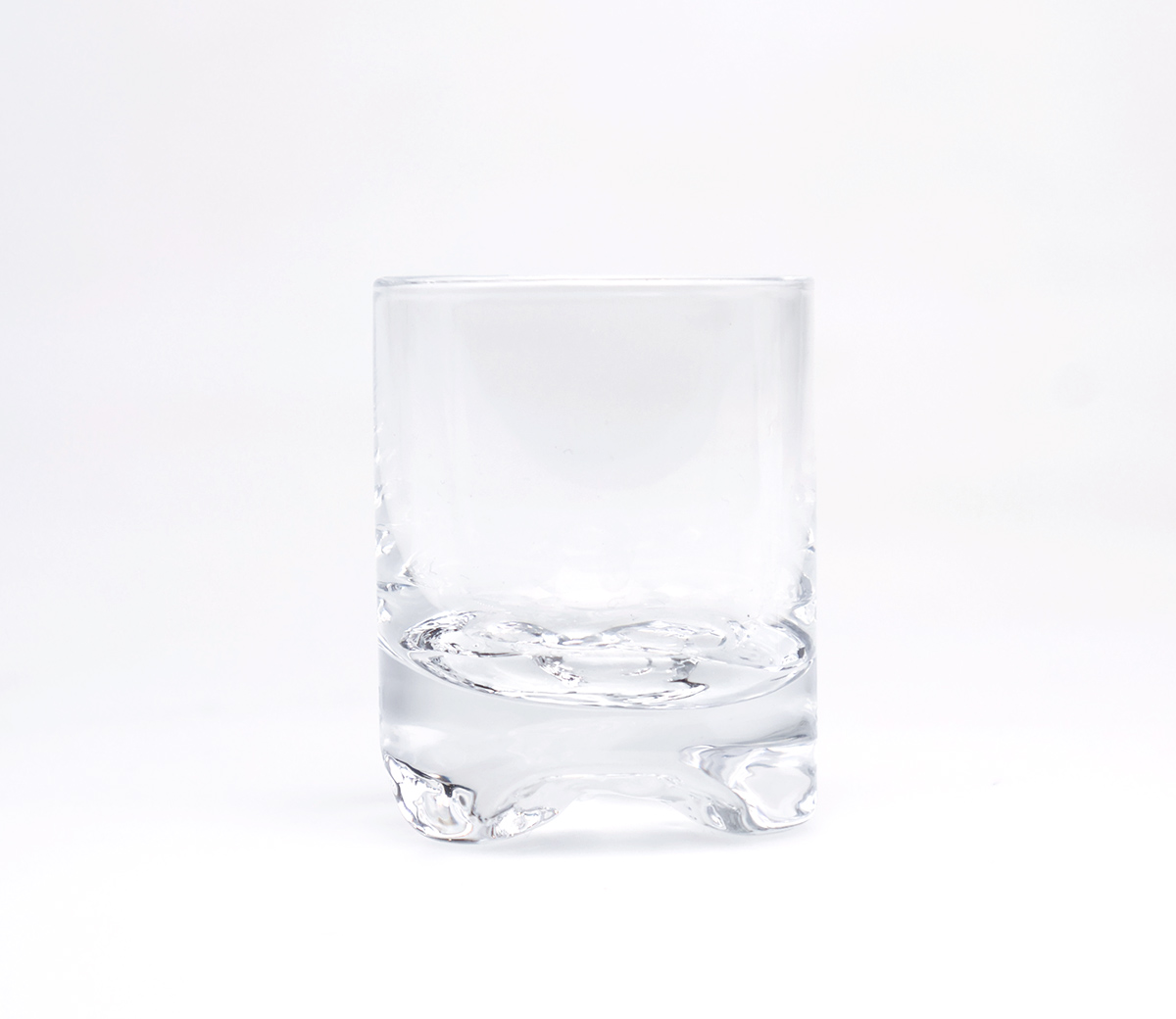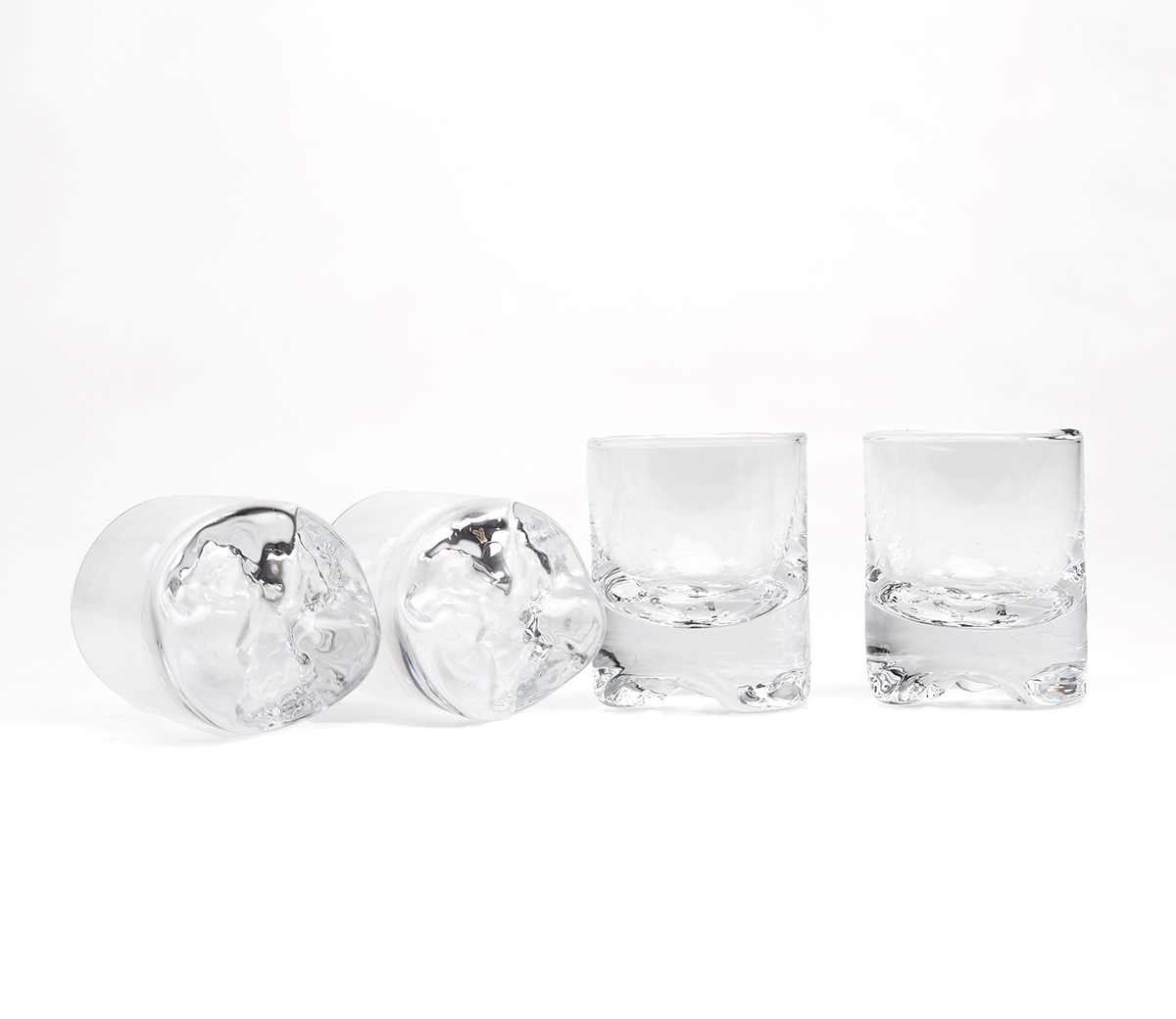 Zo ook bij de Gaissa serie, de glazen hebben een grillige rotsachtige bodem en dunne wanden