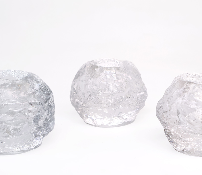 De houder heeft de vorm van een sneeuwbal, door de structuur van het glas verspreid het een mooi sfeer licht.