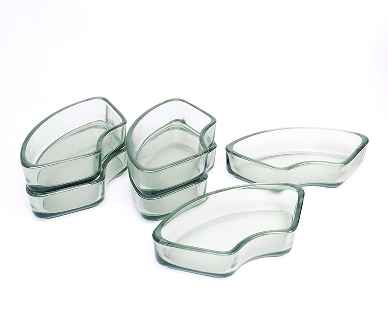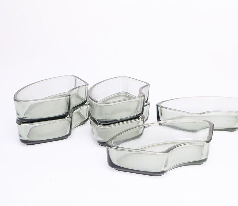 Diameter midden plateau: 24 cm, glazen bakjes: H3 x B14,5 x D8 cm