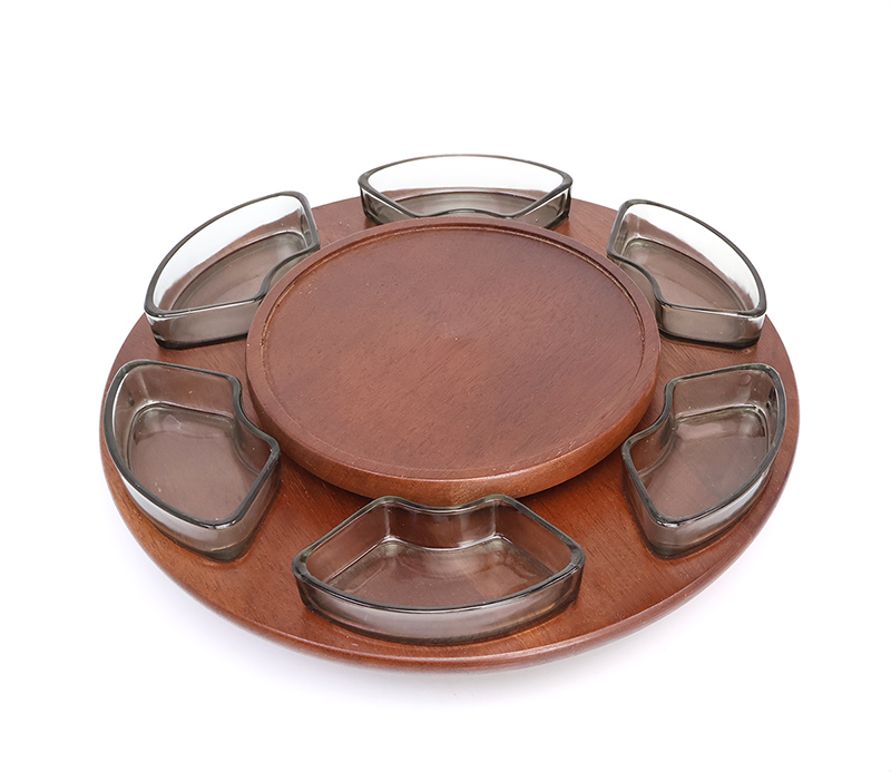 Vintage teak houten Deens design serveer draaiplateau – Lazy Susan