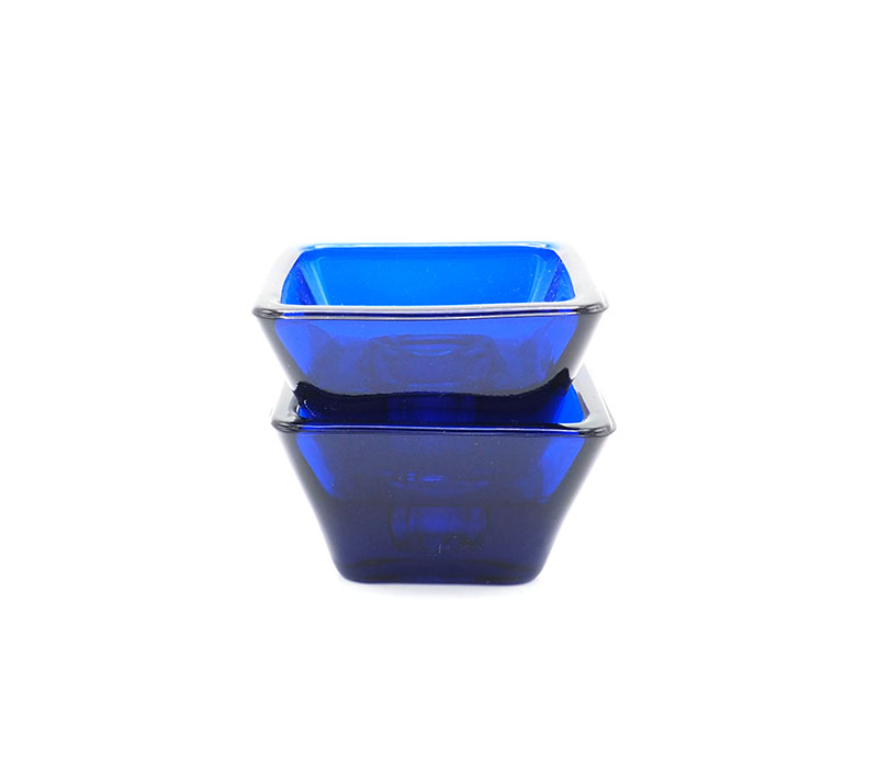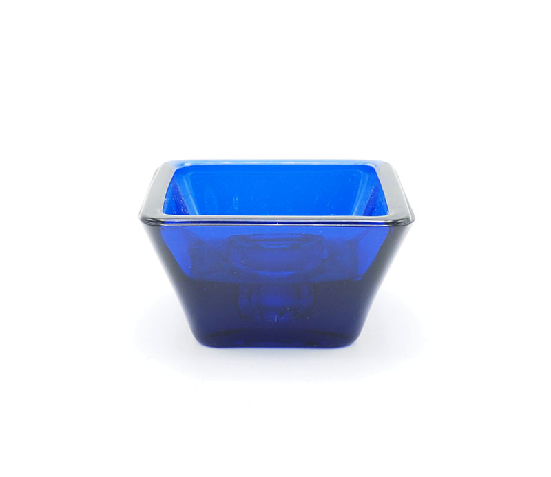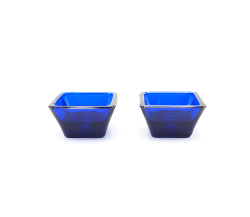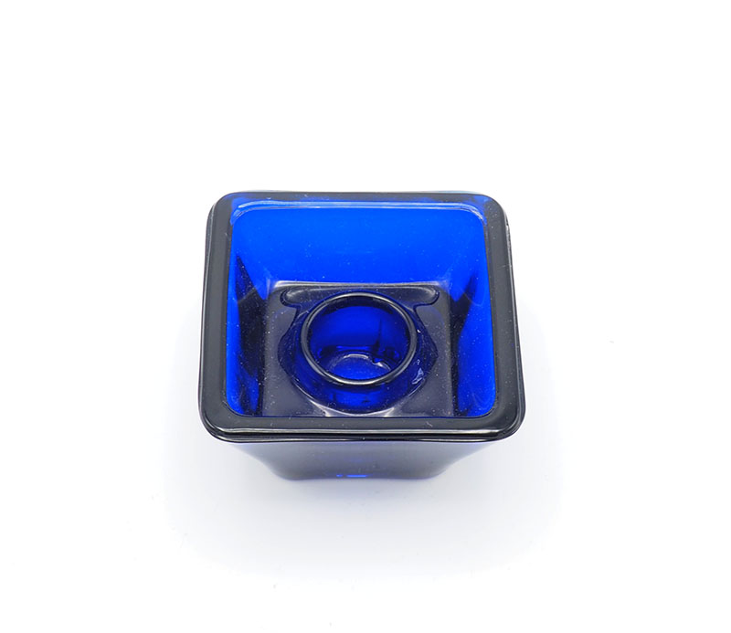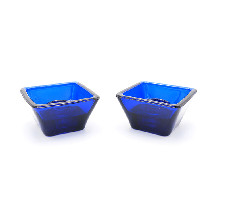 De kandelaren zijn gemaakt van dik kobalt blauw glas.