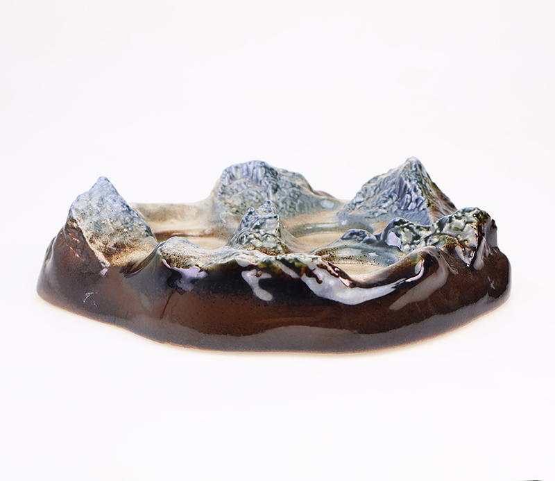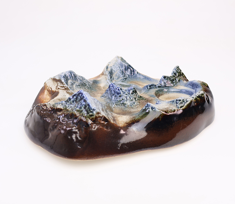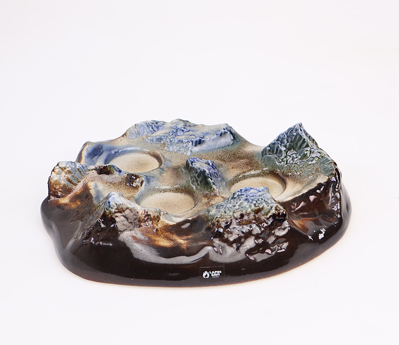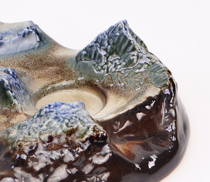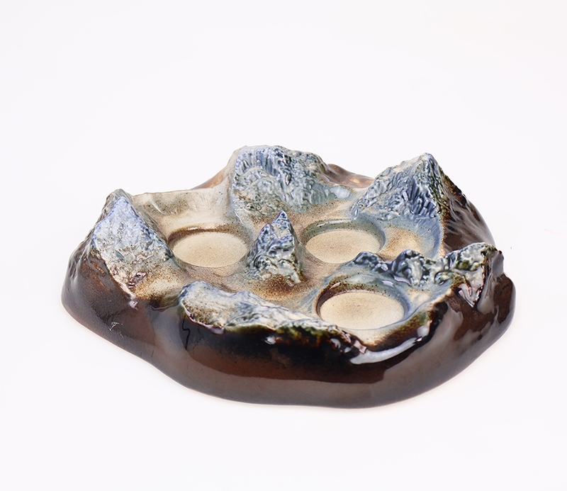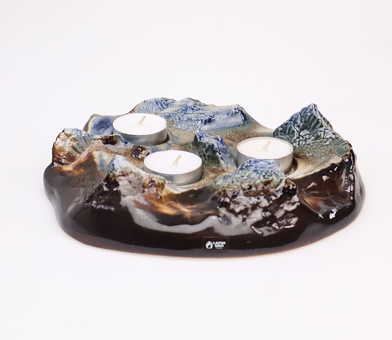 De kandelaar heeft de grillige vorm van gebergte en biedt plek voor 3 waxinelichtjes.