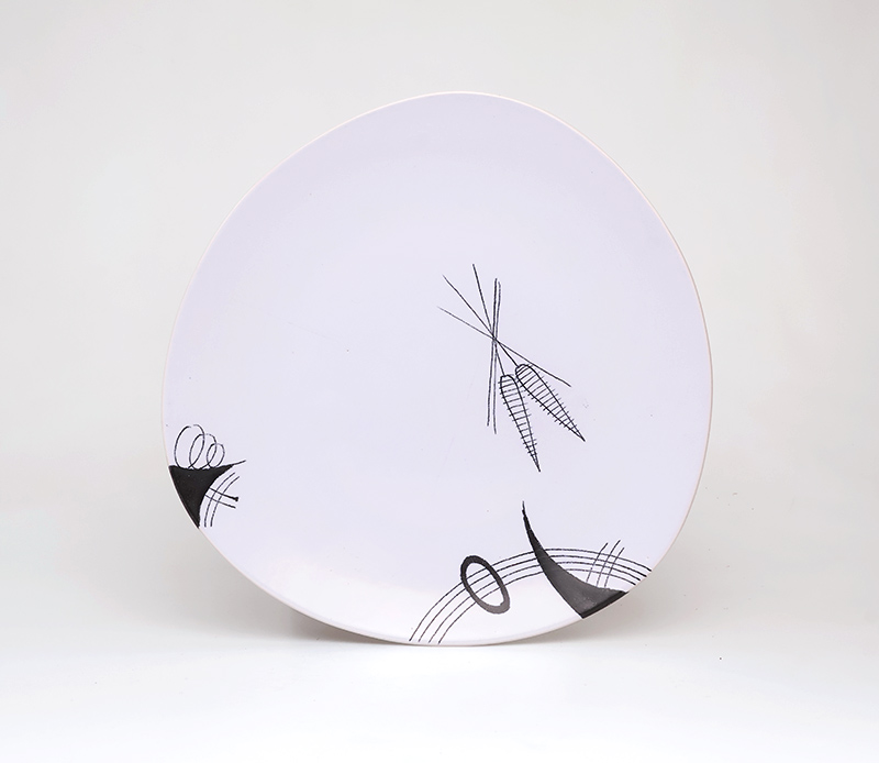 Zeer geschikt als serveerschaal of als decoratief object. Het grafische patroon komt mooi tot zijn recht op het royale oppervlak.