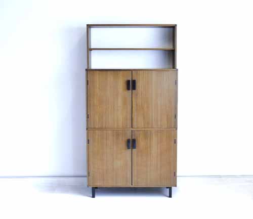 Omschrijving: T.V wandkast "made to measure" Uit de serie made to measure in teak.De kast bestaat uit een onderkast een kast met uitschuifbare plank voor t.v. en een boekenplank. De kast is makkelijk met andere delen uit te breiden.De kast heeft verstelbare zwart metalen pootjes en zwarte handgreepjes.