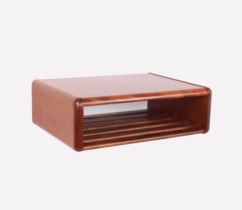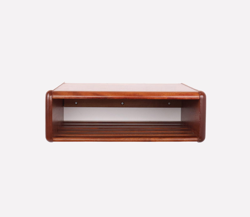 Deze prachtige kastjes kenmerken zich door de mooie afgeronde hoeken en het verfijnde lectuurrek, opgebouwd uit smalle houten stroken, wat zorgt voor een luchtige en elegante uitstraling.