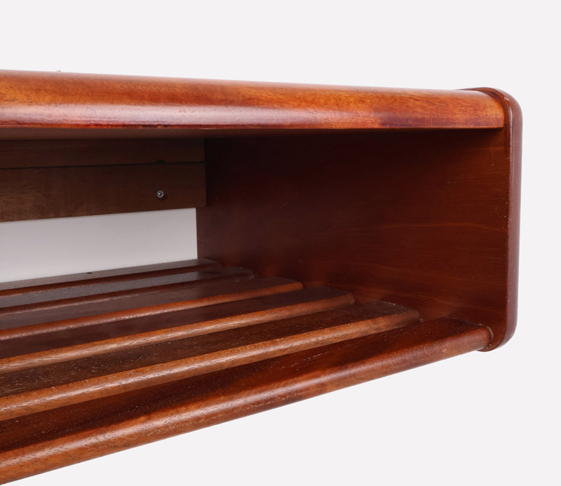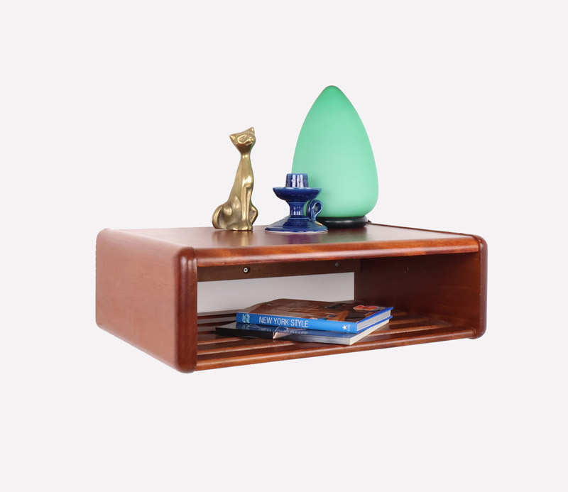 Set van 2 wand nachtkastjes met geïntegreerd lectuurrek, uitgevoerd in massief mahonie hout gemaakt in de jaren 60 in Denemarken.