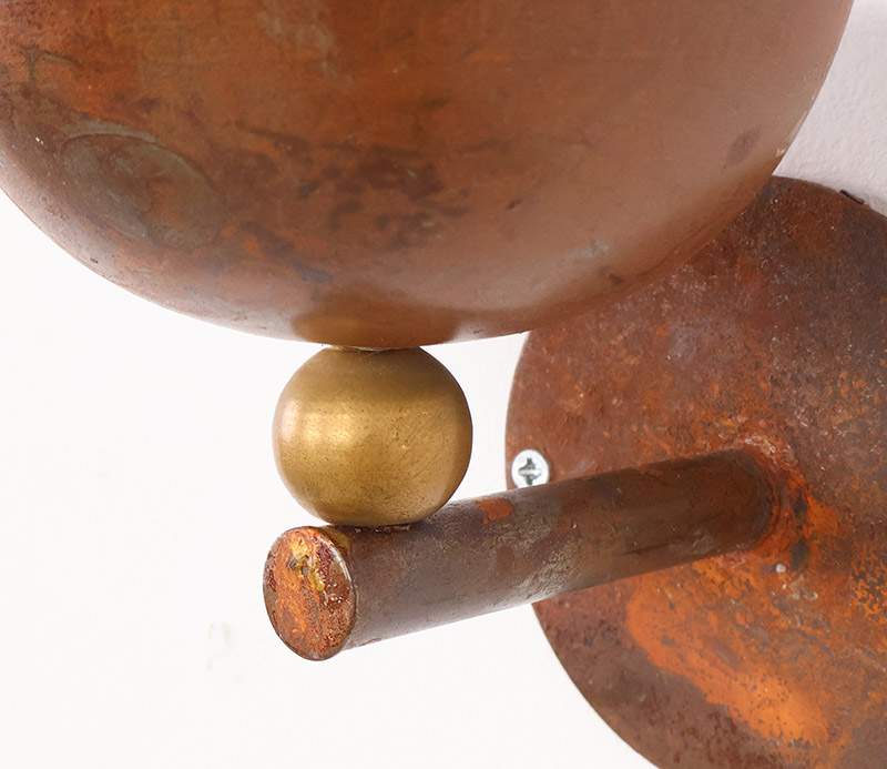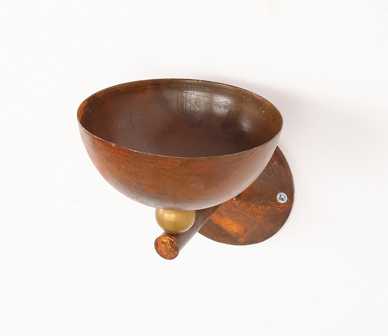 De set bestaat uit twee wandhouders met een halfronde vorm waarbij de warme tinten van het koper subtiel worden geaccentueerd door de messing details.