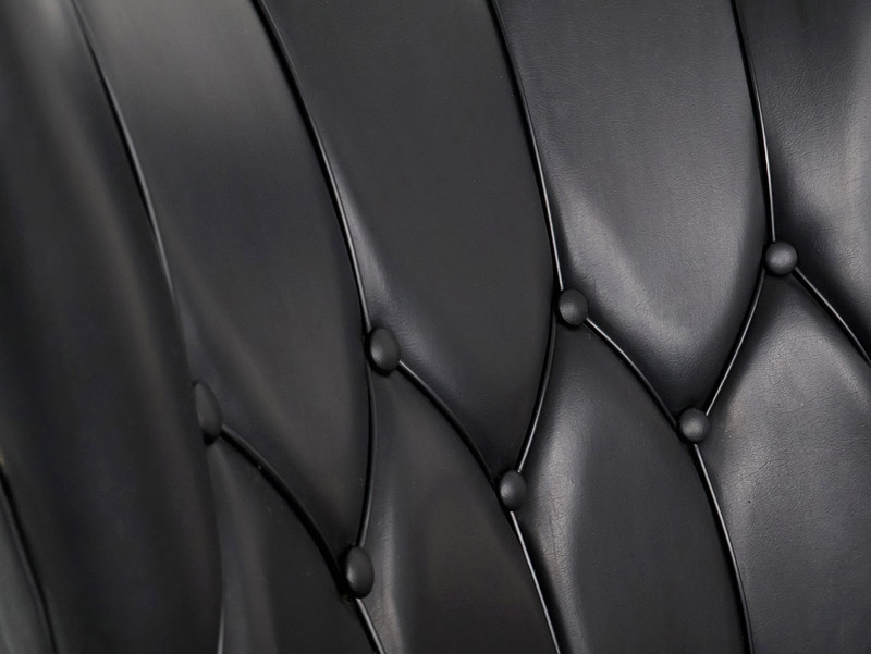 Wat deze fauteuils bijzonder maakt, is de organische vormgeving in combinatie met de unieke rugleuningen. Deze zijn opgedeeld in vlakken door middel van skai koorden, waarbij de kruispunten zijn afgewerkt met knopen. Dit geeft de stoelen een speels, eigenwijs en zeer herkenbaar karakter.