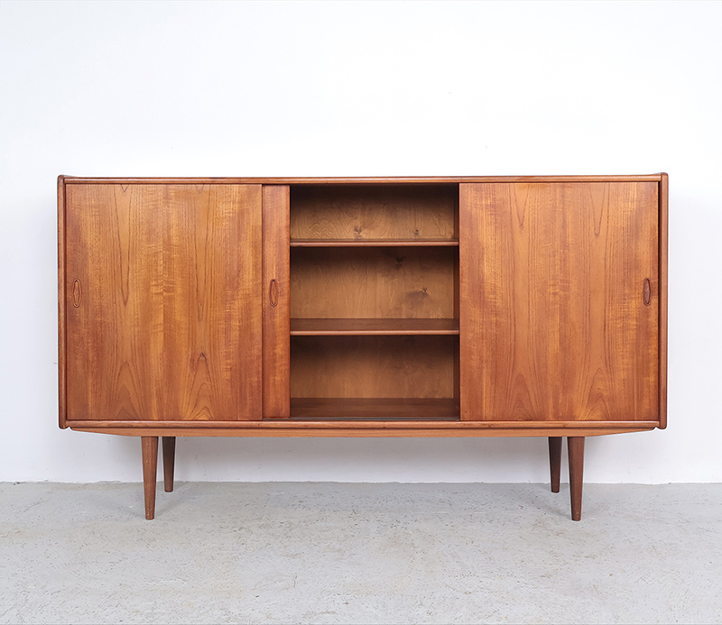 Deens design hoog dressoir of highboard geproduceerd in denemarken in de jaren 60.