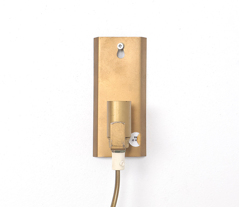 Het messing kapje wordt door middel van een haak aan het metalen muurplaatje geklemd.