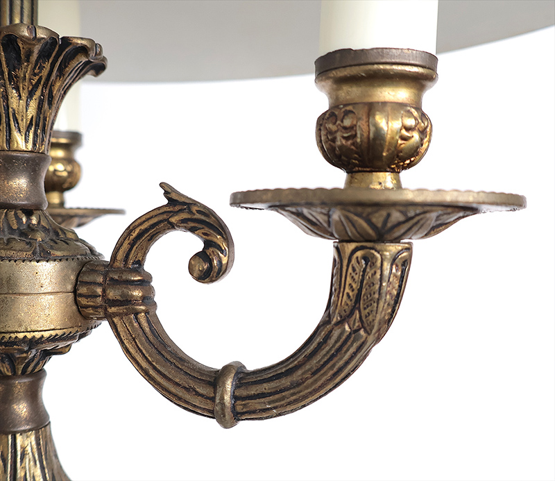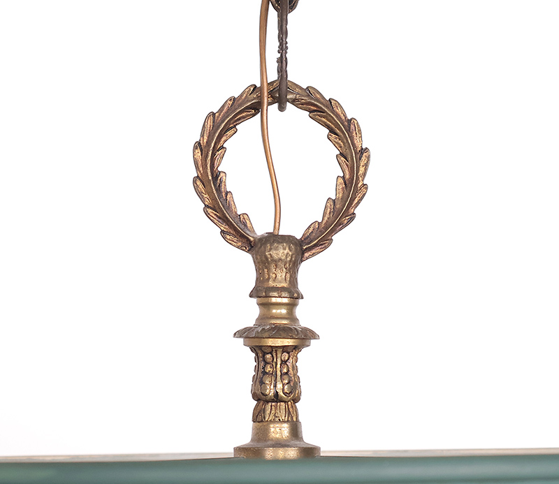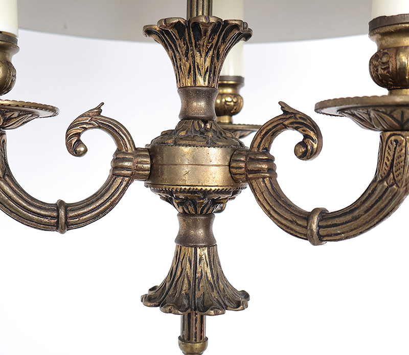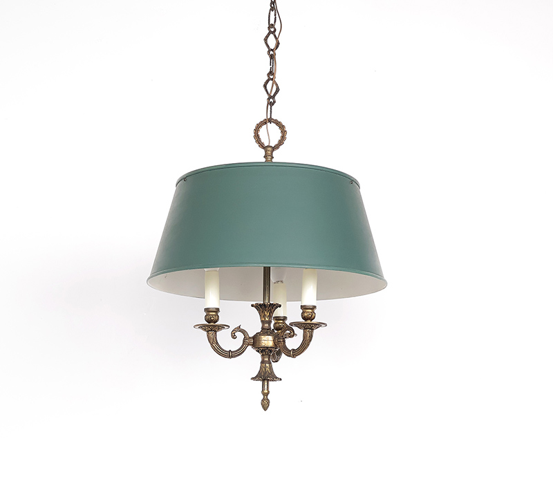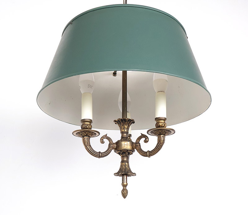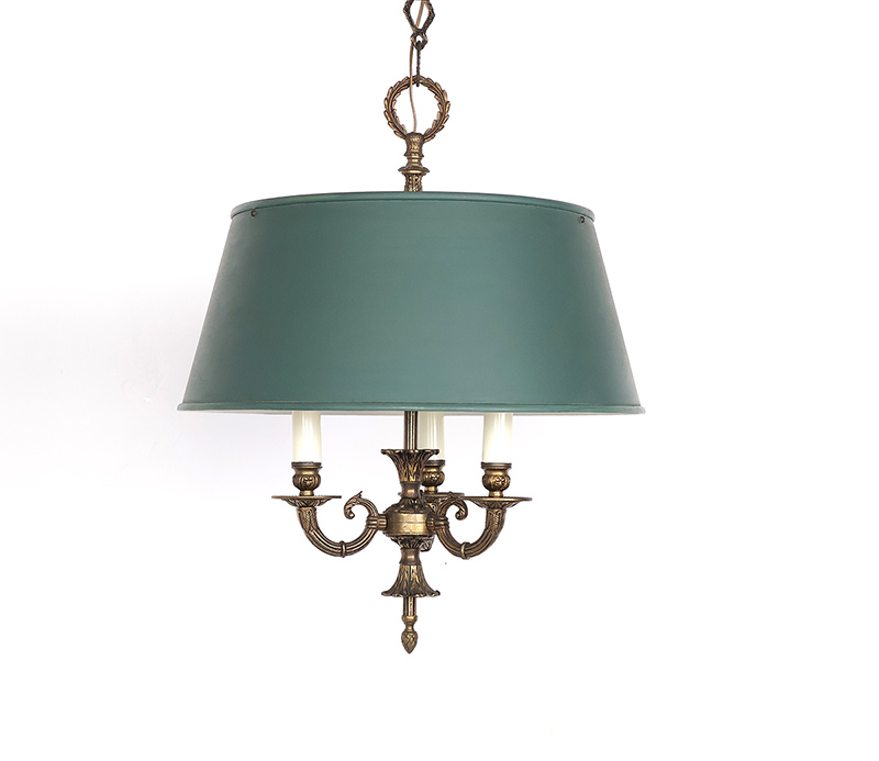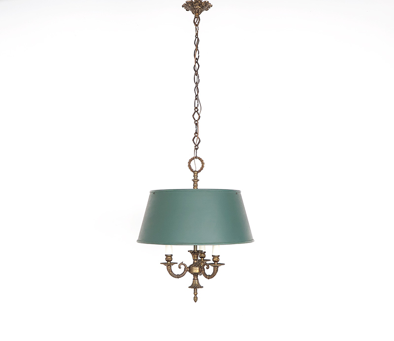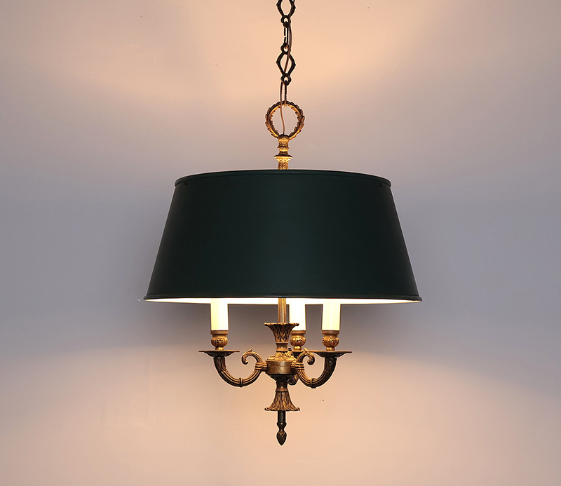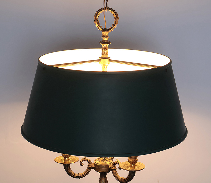 Deze bouillotte hanglamp is een verfijnd voorbeeld van de Franse Empire stijl. De lamp dankt haar naam aan het klassieke Franse kaartspel Bouillotte en wordt gekenmerkt door haar drie armen met kaarsfittingen, die zorgen voor een statige en symmetrische uitstraling