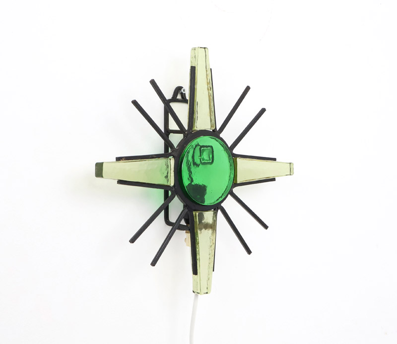Zwart metalen sunburst wandlamp met groen glas, 1960s