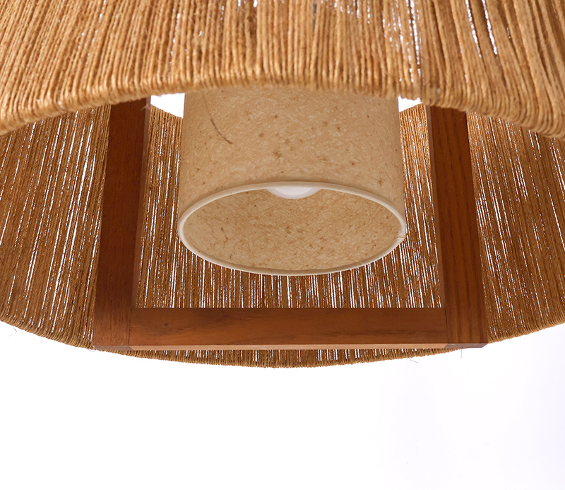 Vintage sisal en teakhouten hanglamp van Temde Leuchten, 1960