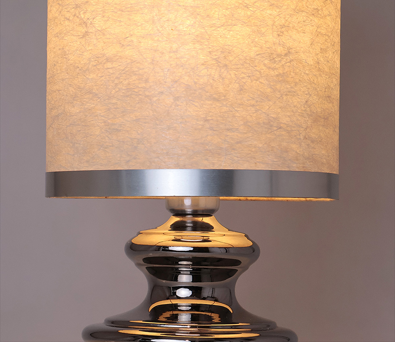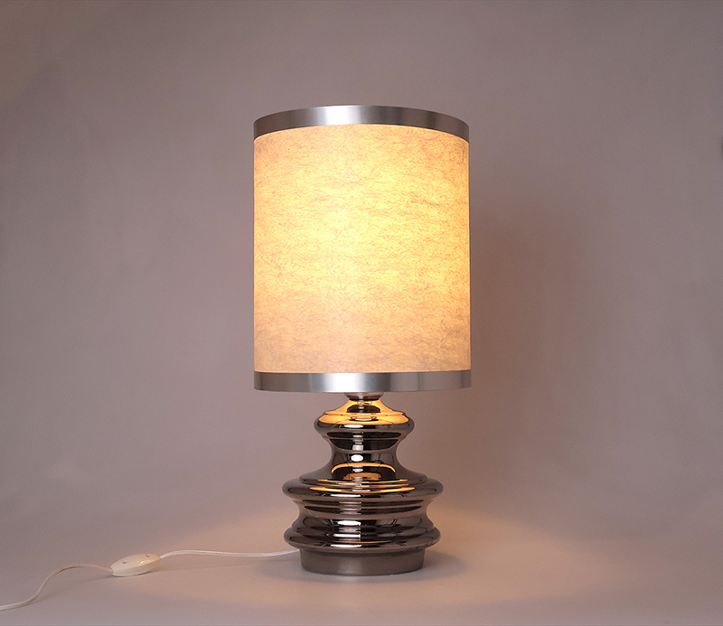 Vintage zilverkleurig aardewerken tafellamp
