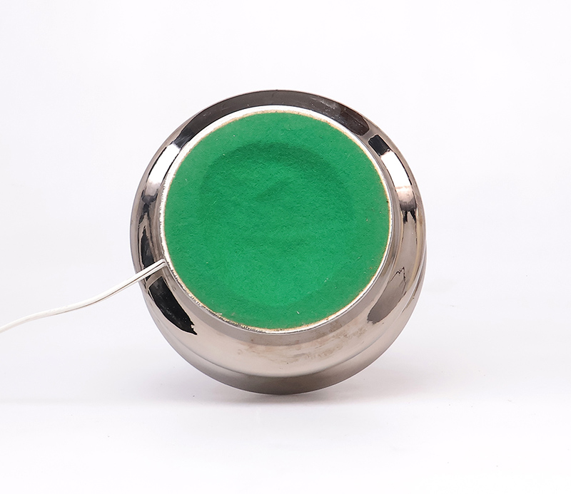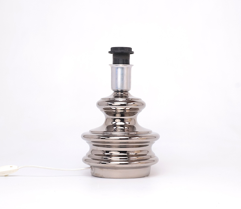 De voet is gemaakt van aardeweken geglazuurd met een glanzend chroomverf.