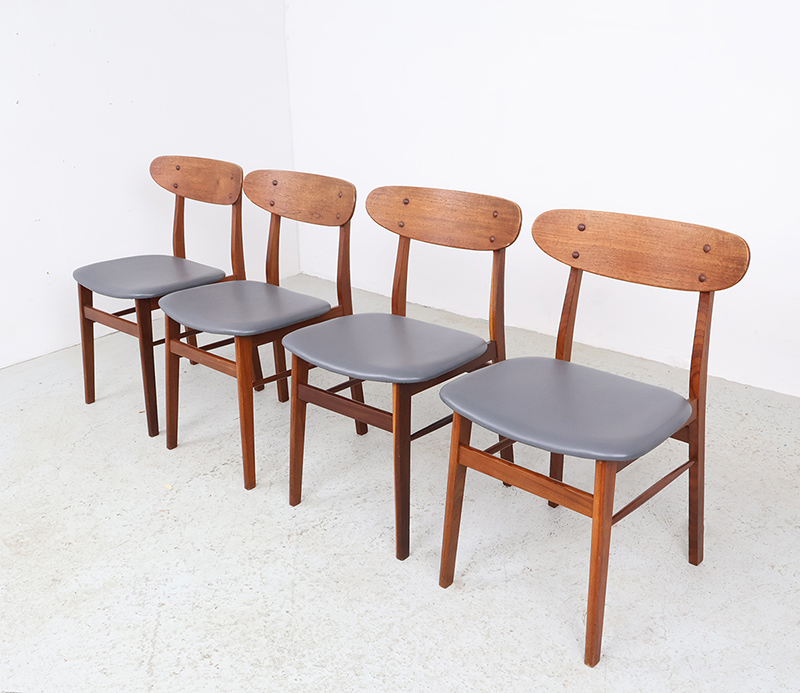 Set van 4 Deense teak eetkamerstoelen – jaren 60