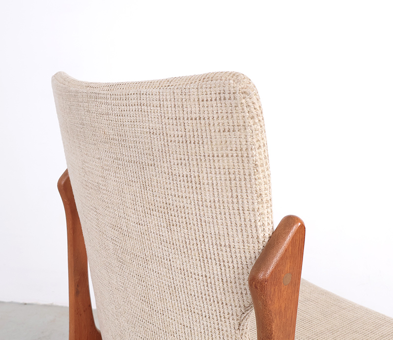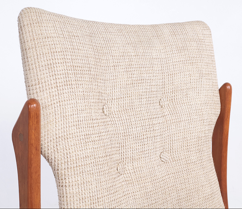 De stoelen hebben een stevig, slank vormgegeven frame in hoogwaardig teak, gekenmerkt door vloeiende, organische lijnen die zowel elegant als tijdloos zijn.