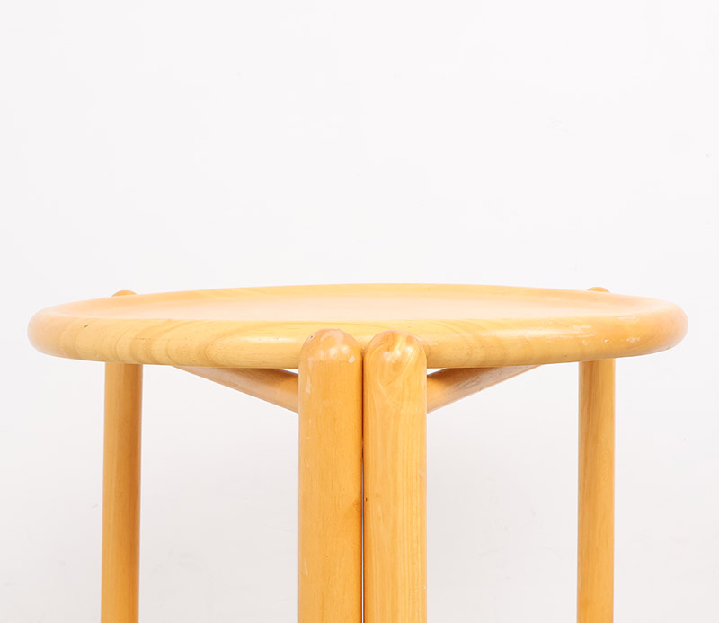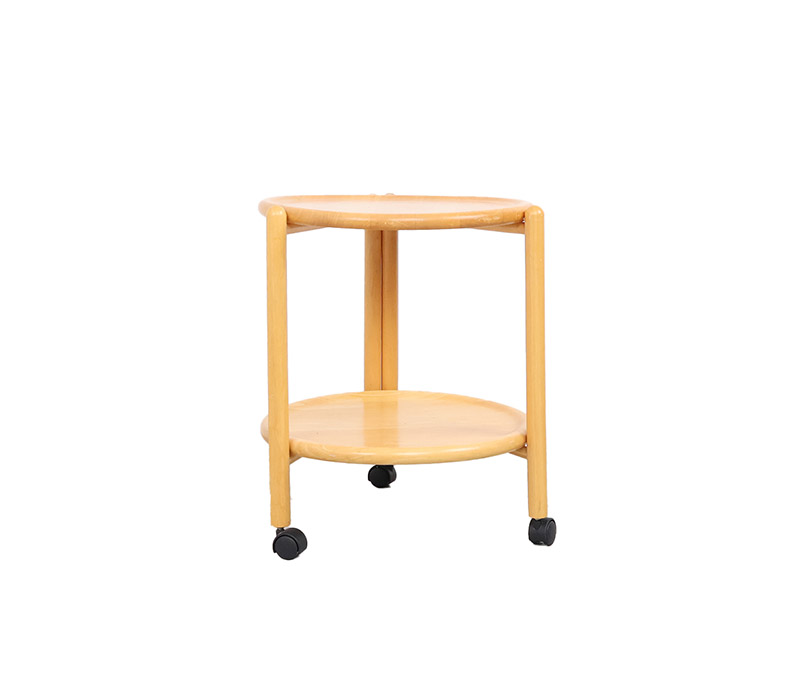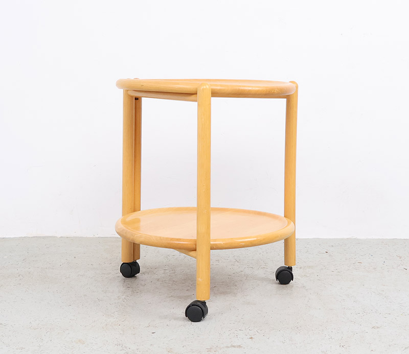 De trolley is gemaakt van massief uit eikenhout en heeft 3 plastic wielen.